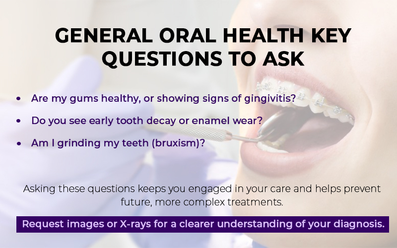 - “Do I need X-rays, and how often?” (Some patients need them yearly; others, less.)