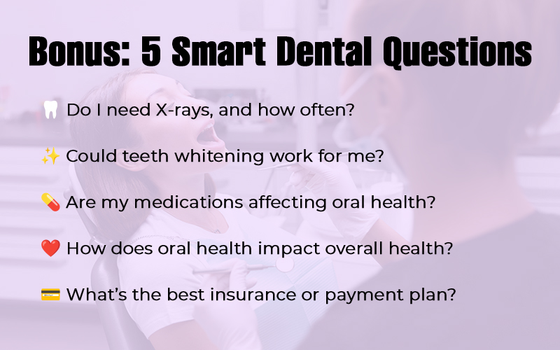 - “How does my oral health impact my overall health?” (Gum disease links to diabetes/heart issues.)